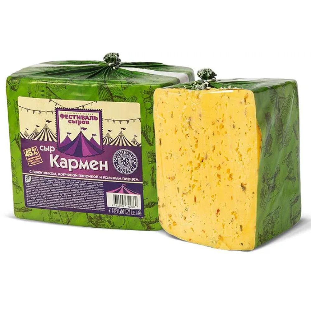 Сыр "Кармен" с пажитником,копч.паприкой,красн.перцем 45% вес